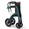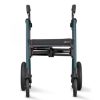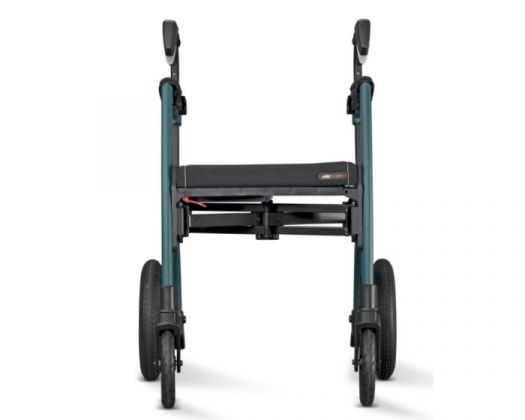 Dankzij de reflecterende onderdelen op de rollatortas bent u tevens goed zichtbaar in het donker. Tegen een randje op? Dan gebruikt u de drempelhulp. Druk hier met uw voet op en kantel de rollator naar u toe: makkelijk de stoep op. Dankzij de trommelremmen remt deze rollator voor buiten extreem goed, onder alle weersomstandigheden. De remkabels zijn keurig weggewerkt, zodat u nergens achter blijft haken. Het kussen op de zitting is wigvormig: de achterkant is dikker dan de voorkant, waardoor uw bekken naar achteren kantelt en dat zorgt voor een optimale zithouding.